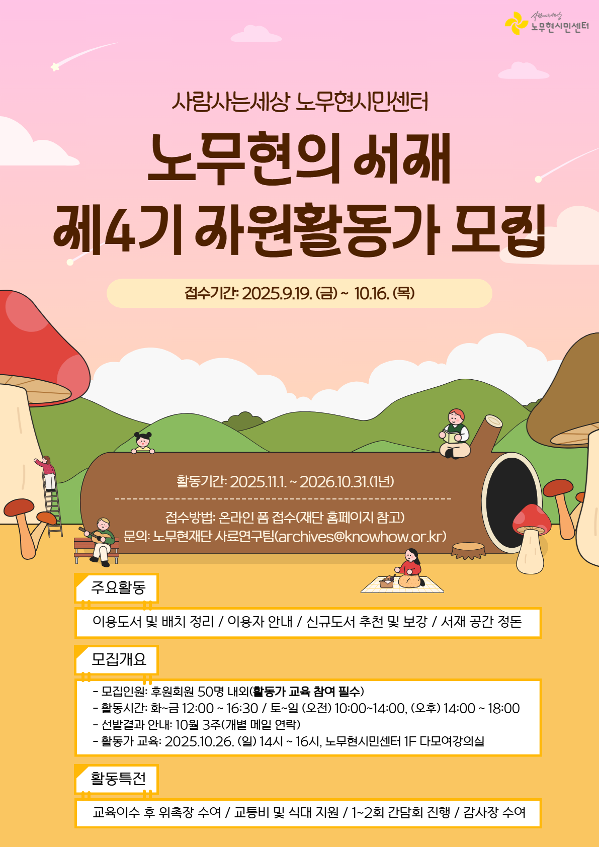 '노무현의 서재'를 함께 운영해 나갈 제4기 자원활동가를 모십니다!